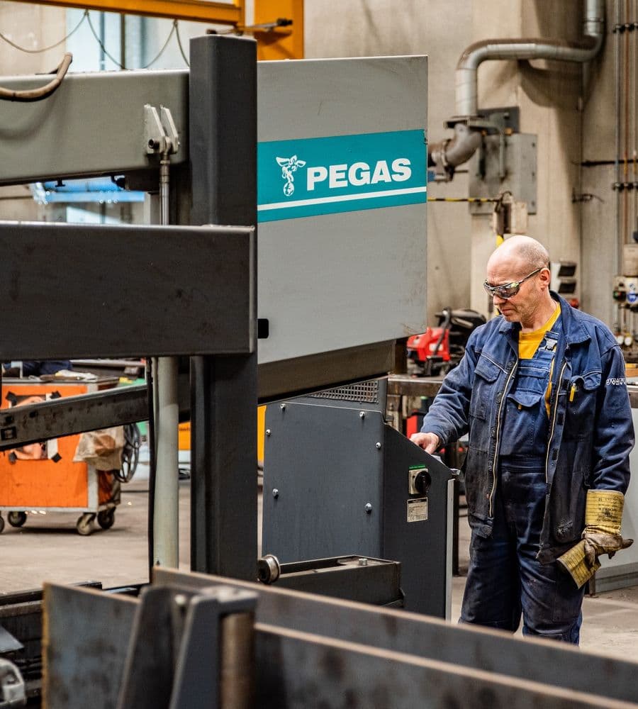 HYE beschikt over een groot staalatelier met toegangspoort aan de Scheldekant in Burcht. Die strategische locatie maakt het mogelijk grote metaalconstructies rechtstreeks via het water af te voeren. Qua hijs- en manipulatiecapaciteit is het staalatelier voorzien van twee 25-ton, twee 10-ton en twee 5-ton rolbruggen. Volgende professionele machines staan ter beschikking voor uw project: